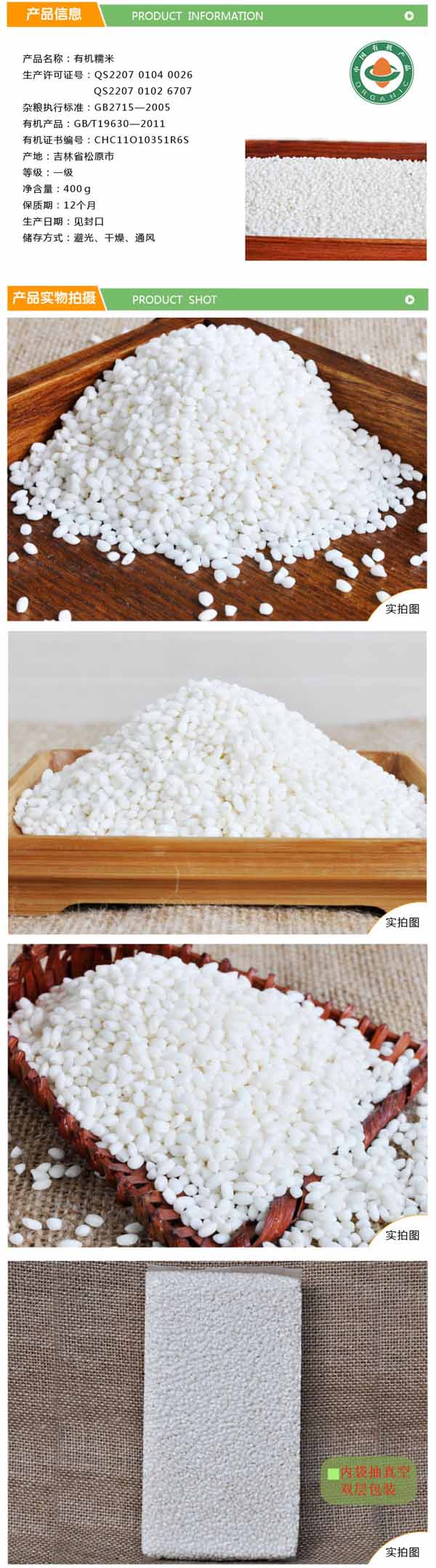 有机糯米400g